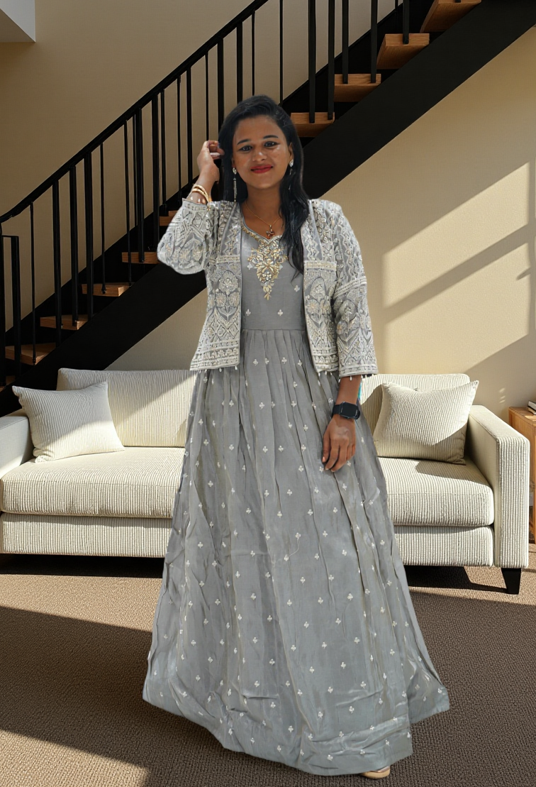 Gray colour georgette chudidar kali